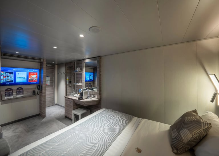 The Balcony Staterooms on The MSC Seashore offer a blend of comfort, style, and private outdoor space, making them a popular choice for guests who want to enjoy fresh ocean air and ever-changing views. These staterooms are perfect for relaxing in your own private outdoor space while enjoying spectacular sea views, and for unwinding in a modern, comfortable environment after a day of activities.